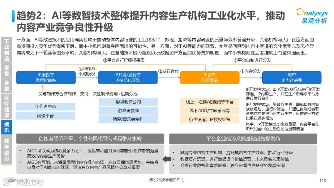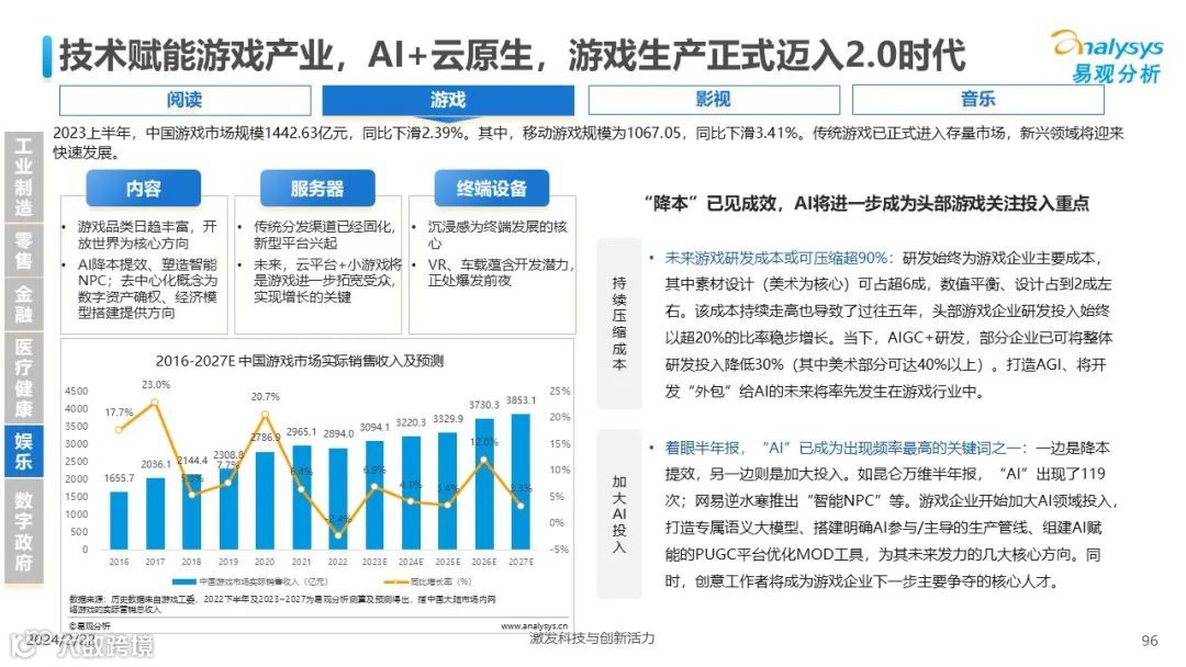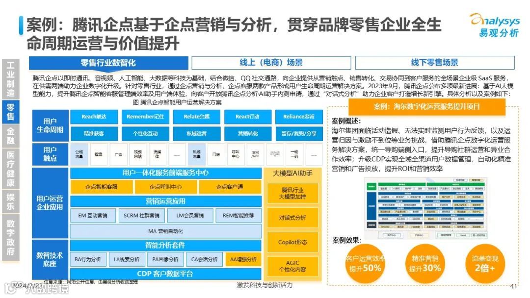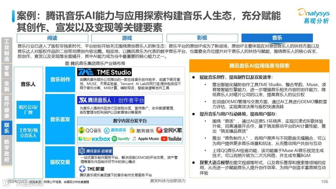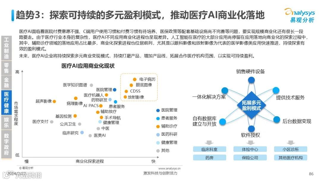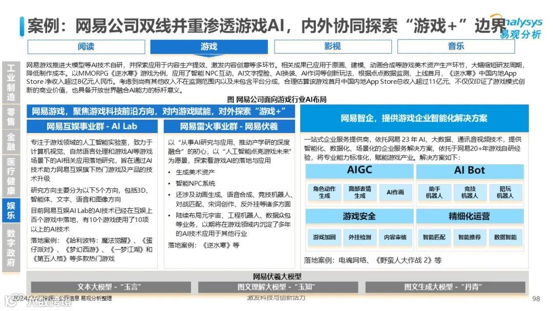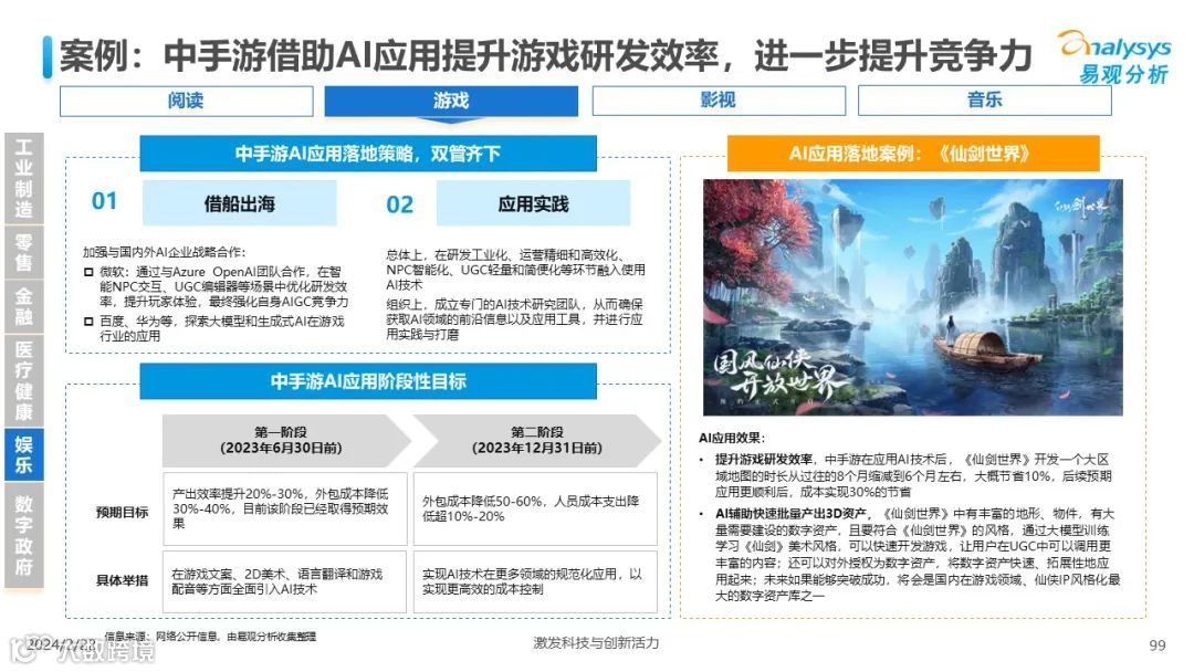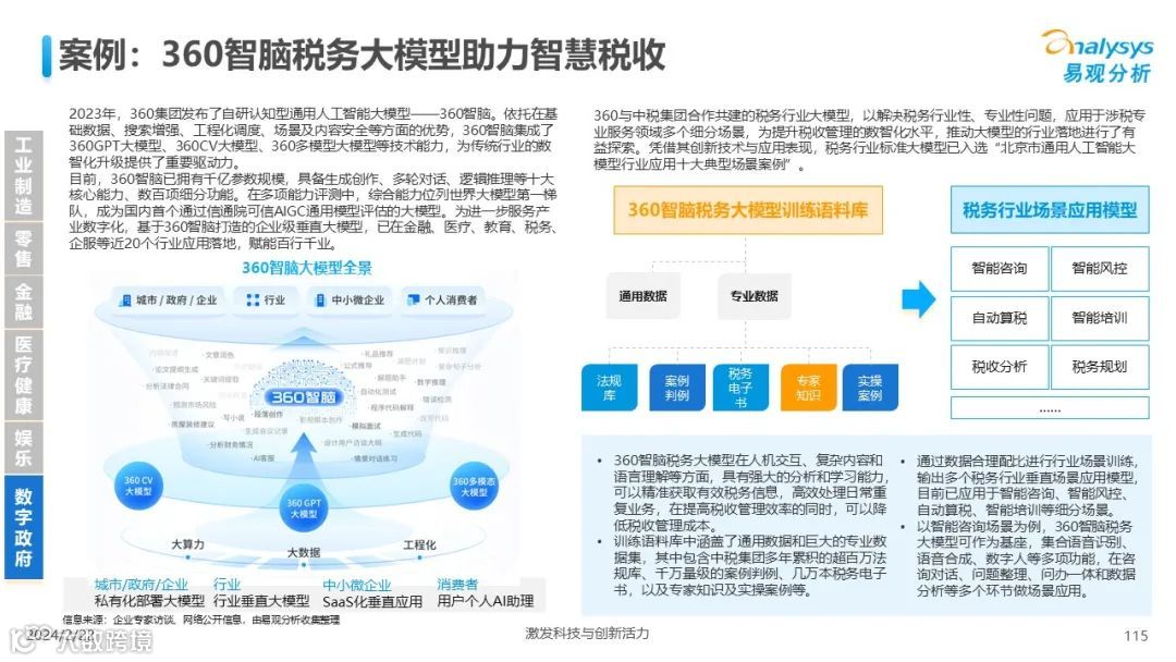 易观分析:人工智能发展进入生成式人工智能时代,大语言模型所呈现的“涌现”能力,正在推动人类社会向AGI的方向持续探索,这将贯穿科技公司与研究机构相当长周期的关注焦点。基于对人工智能技术发展与行业应用情况的长期跟踪与研究,《中国人工智能产业应用发展图谱2023》针对主要行业AI应用发展背景、关键价值、挑战和趋势,以及核心环节/场景的典型案例进行深入分析,全面展开产业AI智能化应用全景。
