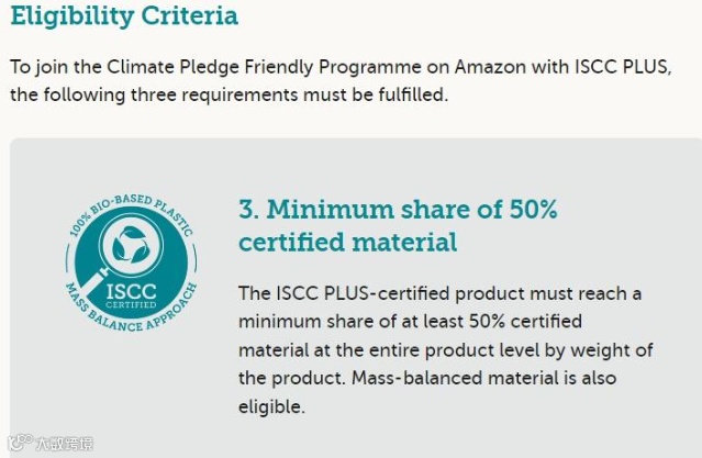 - 核心要求:产品整体的 ISCC 认可可持续材料占比≥50%,缺一不可