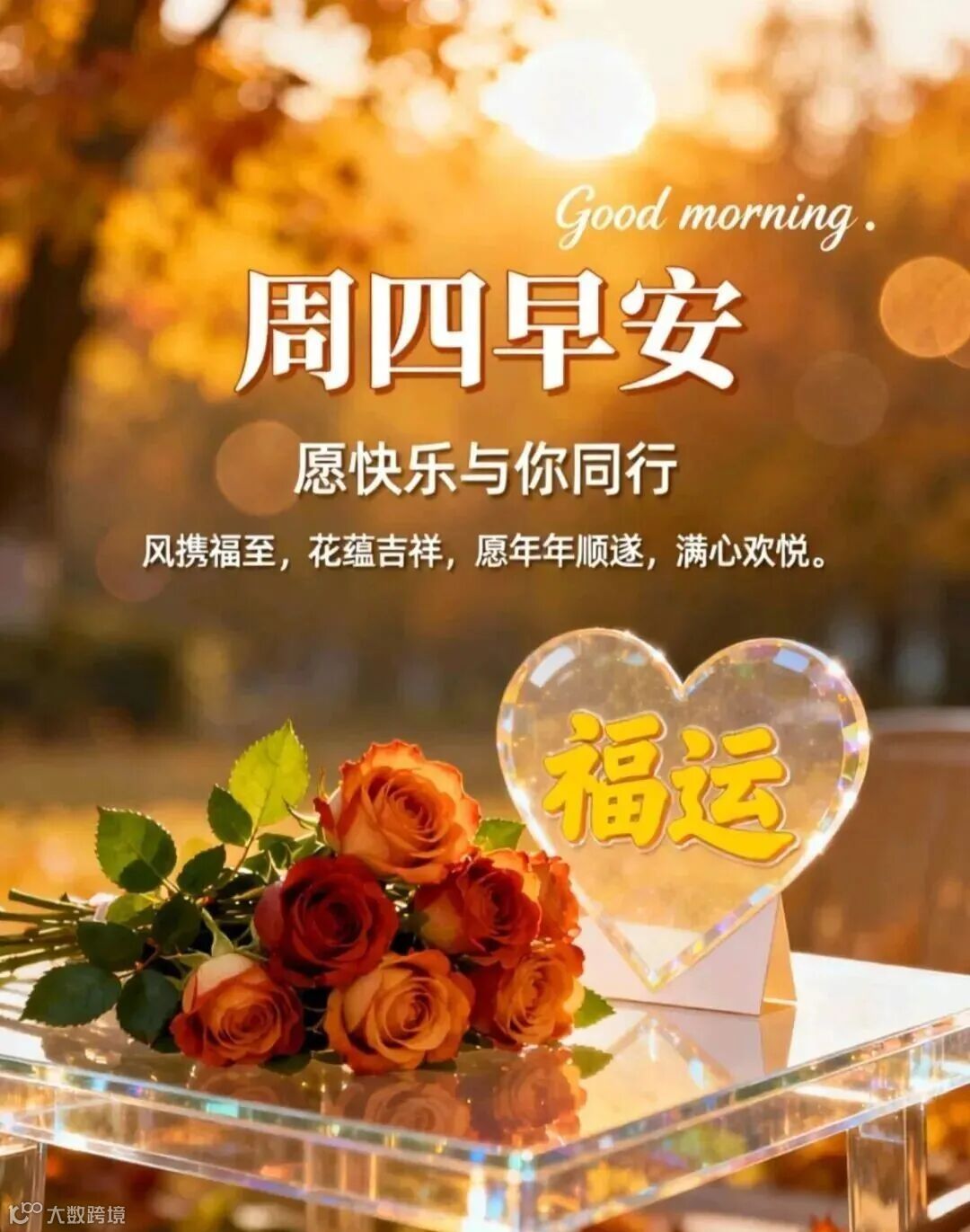 今日周四,恰逢深冬时节,寒意渐浓,但人心可以更暖。周四的清晨带着深冬的清冽与静谧如约而至。窗外或许凝着薄薄的霜花,阳光穿透晨雾洒下柔和的光晕,给寒冷的冬日添了几分暖意。愿清晨的第一缕阳光照亮你的前路,驱散所有疲惫与迷茫,周四早安!