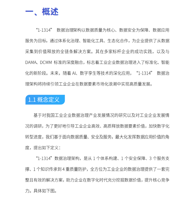 《2025年工业企业数据治理实践指南》由国际数据治理协会(IDGA)联合多家工业企业与数据治理专家共同编制,创新性地提出"1-1314"数据治理架构,专为工业企业数字化转型中的数据要素价值释放提供系统性解决方案。