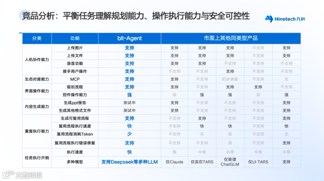 九科信息bit-Agent与市面上其他同类型产品的能力对比