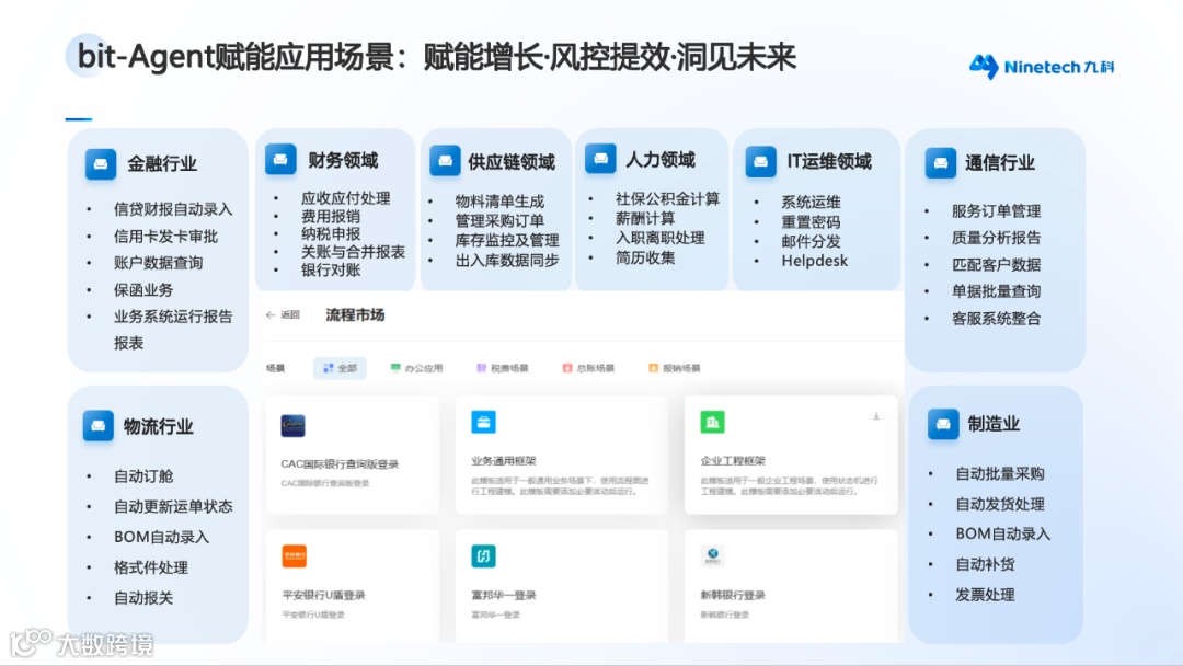 据IDC预测,2025年全球70%的企业将应用AI Agent技术。而九科信息的bit-Agent平台,正是抓住了这一趋势,通过“AI+自动化”的创新模式,为金融、制造、政务等行业提供定制化解决方案,推动产业生产力变革。
