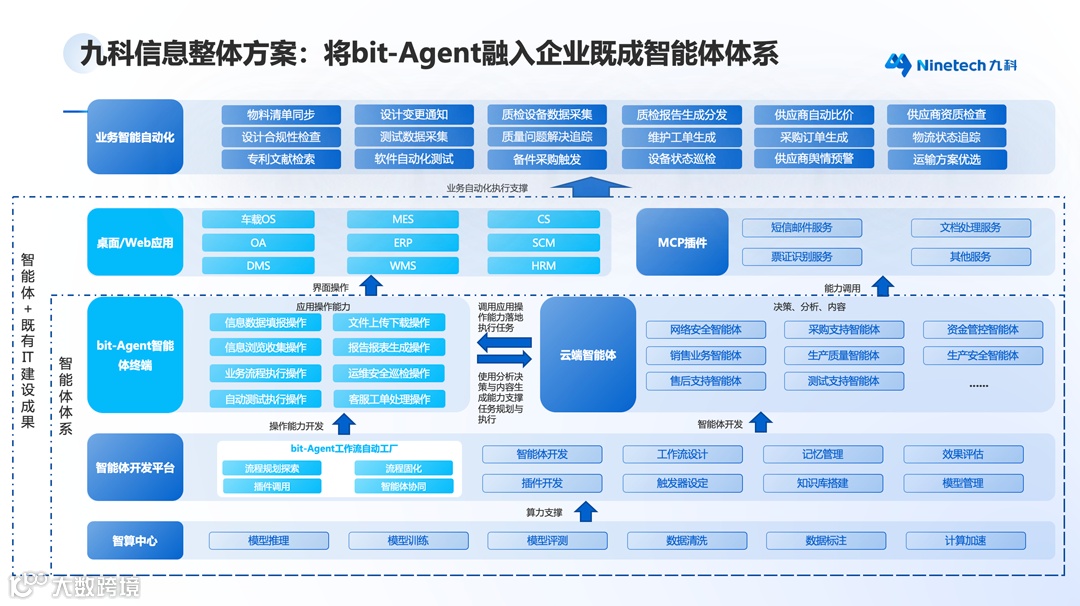 当谷歌、英伟达等科技巨头搭建起AI产业的技术底座,垂直领域的创新企业正聚焦场景落地,将技术转化为实际生产力。九科信息研发的bit-Agent正是其中的典型代表。它深耕大型企业办公场景,以务实的技术路径,打通AI与办公需求的最后一公里。
