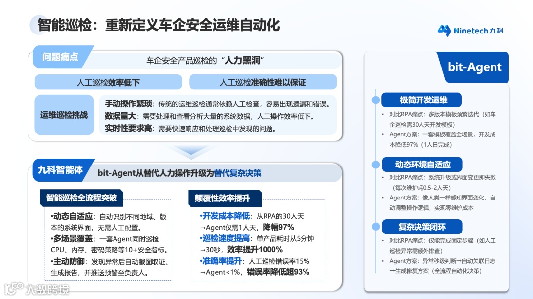 商业化落地成果进一步验证了bit-Agent的实用价值。目前,该产品已覆盖制造、金融、能源等多行业的大型企业。其与某上市集团的安全巡检案例,成为国内首个实现了GUI Agent商业化落地的标杆,首笔订单即高达近千万元,既展现出九科信息在当前赛道的强大竞争力,同时也大幅提振行业对智能办公前景的信心。