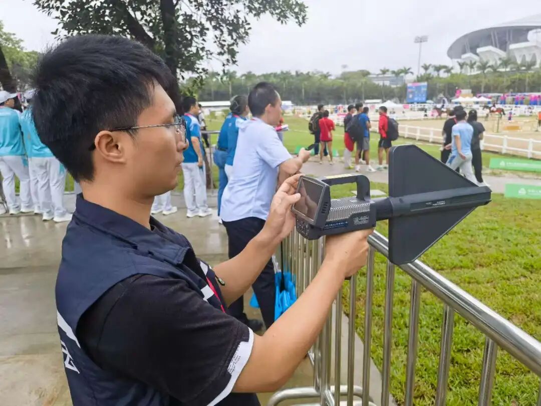 自9月20日起,累计派出8批次驻场人员,为现代五项、武术、体操、蹦床、男/女子水球、跳水、田径等7项赛事及开幕式完成45天累计553小时场馆内保护性监测,为赛事无线电通信提供安全保障。