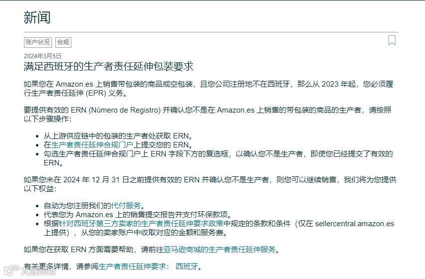 昨日,亚马逊再次发布公告,提醒各位卖家履行生产者责任延伸EPR义务,要求在规定期限内提供有效注册号,否则将会被亚马逊平台强制“代付”,并额外收取相应手续费!