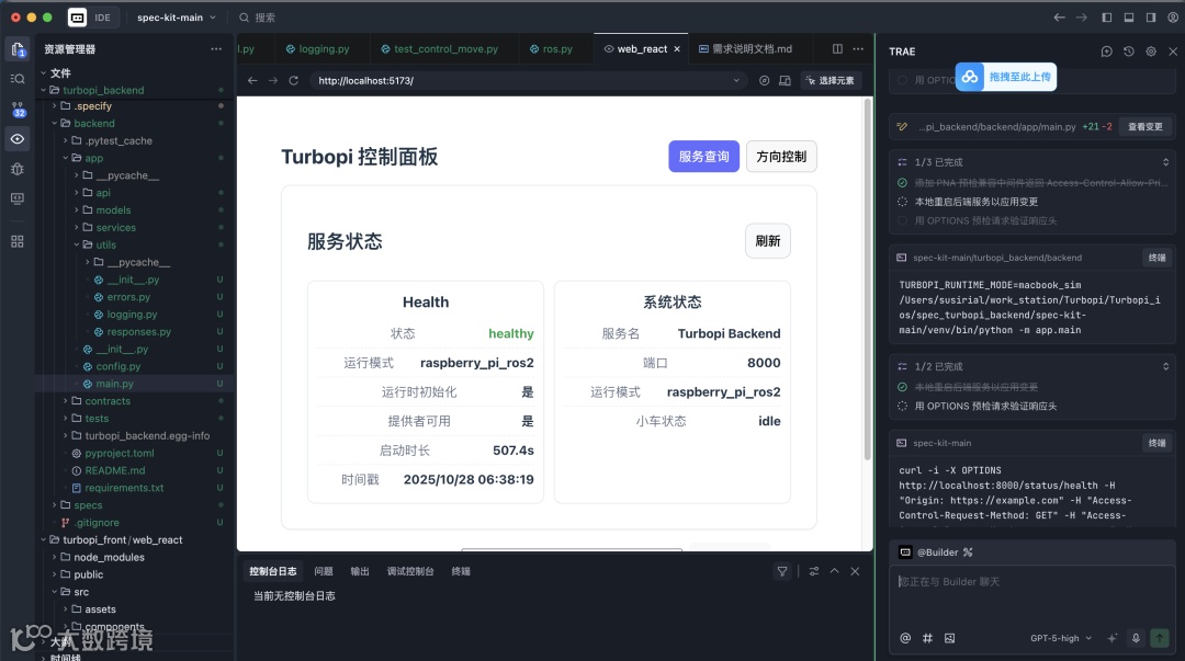 本文将介绍如何利用 TRAE + Spec-kit 实现一个控制小车方向的前后端系统。