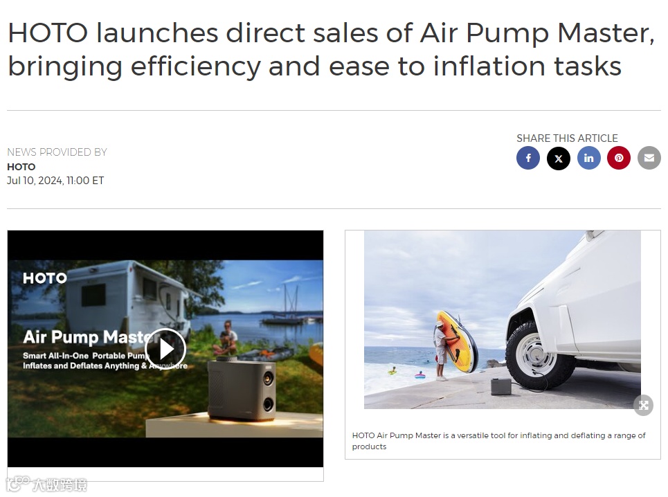 例如2024年7月HOTO借助通稿发布新款多功能充气泵上市消息,有效地帮助新品进行宣发预热。