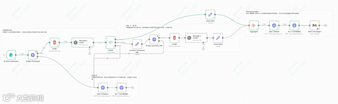 该工作流通过自动化数据清洗、AI智能判断、深度信息挖掘与实时同步,显著提升线索响应速度与首次接触质量,助力销售团队高效完成客户初筛与协同准备。