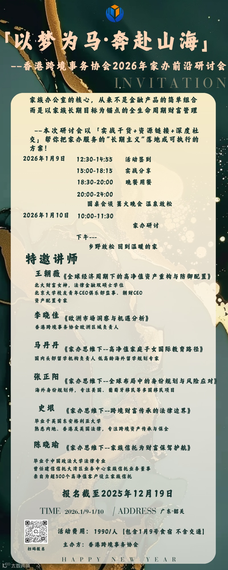 欢迎你于2026年初相聚韶关,与香港跨境事务协会及一群秉持长期主义的家族、专家与伙伴,在山海之间,共同梳理属于你和家族的财富蓝图。