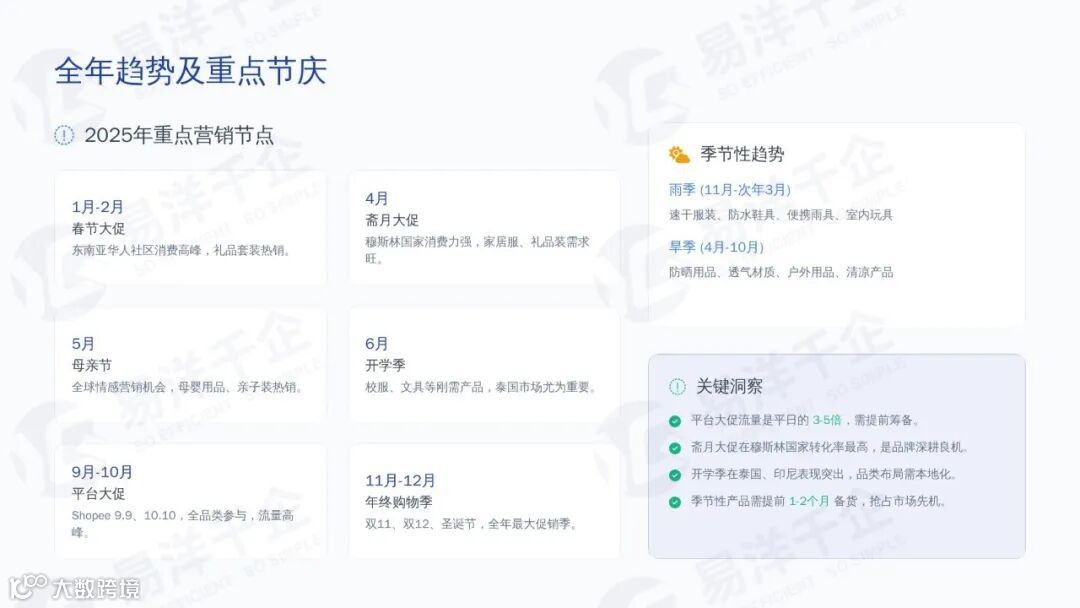 - 4月 斋月大促:穆斯林国家重要节点;家居服、礼盒热销;须注重文化适配与包装设计。