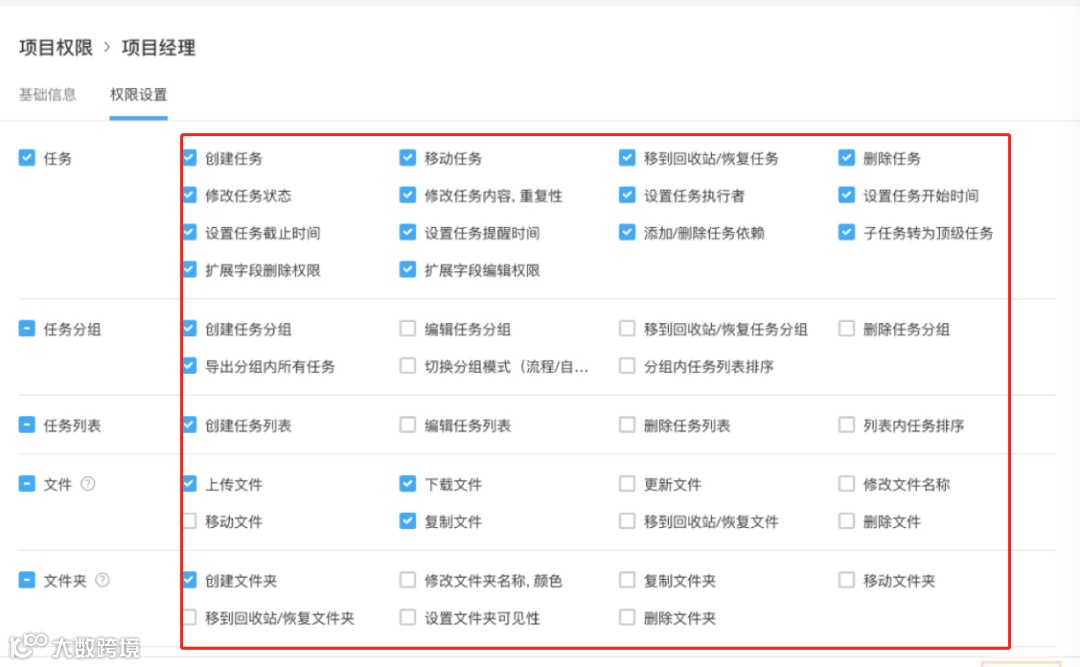 权限组:权限的集合,可以给权限设置一个权限组,例如可以将查看查看员工业绩、查看客户信息关联成一个权限组,当下次需要给用户赋予权限时,直接选择该权限组即可,就不需要一一去设置多个权限了。