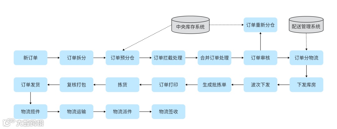 订单履约中心:负责处理订单履约的全过程,对上通过订单转换中心与销售平台进行信息同步,对下通过仓储路由中心将订单信息上下传,内部可以通过调度中央库存、配送系统、规则引擎等多个外围系统对订单信息进行层层拆解和组装,将订单加工为满足履约条件的可执行指令。 -