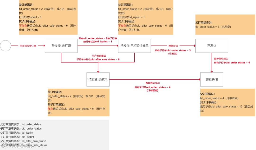 将订单打印成快递单后,拣货、打包、快递发货,且物流单号要回传到平台/商城; -