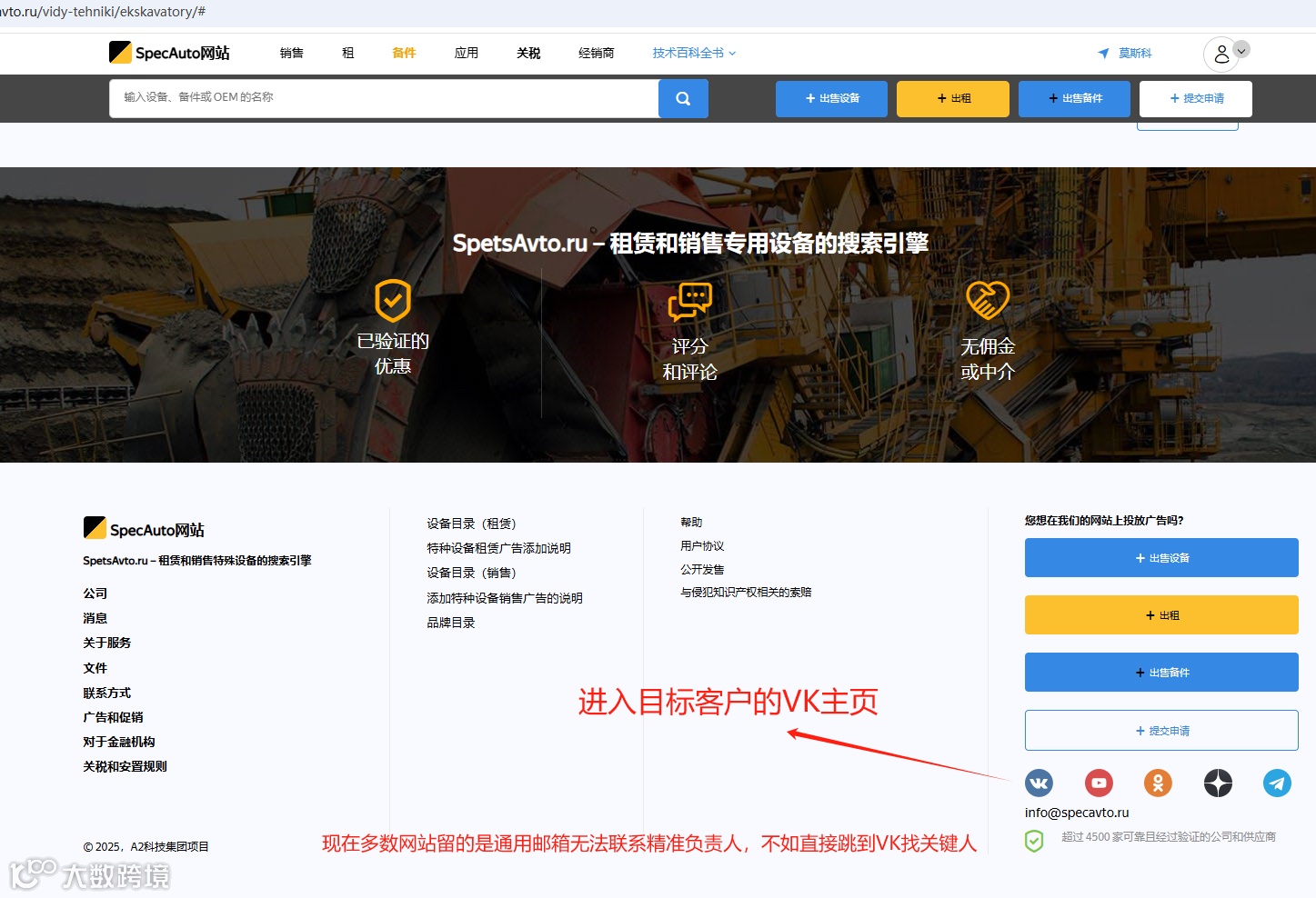 如果企业官网有VK链接,直接跳转到VK主页,找到管理员或关键联系人,发送私信联系。