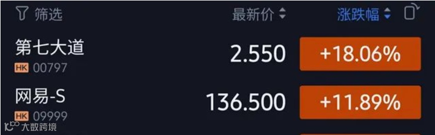 同时在消息传出后,网易美股和港股股价也应声上涨,尤其是港股的涨幅遥遥领先于其他游戏公司,仅次于第七大道,原因既有近期监管部门放出的各种正向信号,也有投资者看好网易可能与微软合作,将暴雪游戏带回中国的前景这一因素。