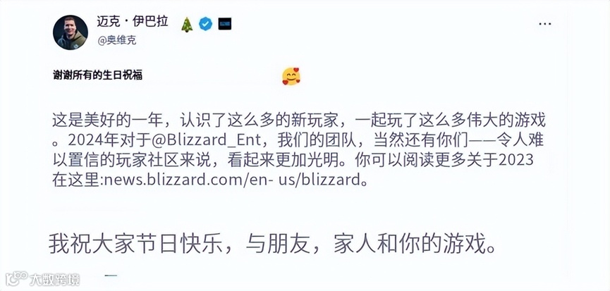 ▲图:暴雪总裁迈克·亚巴拉甚至发文庆贺鲍比·科蒂克离职,并称“更加光明”