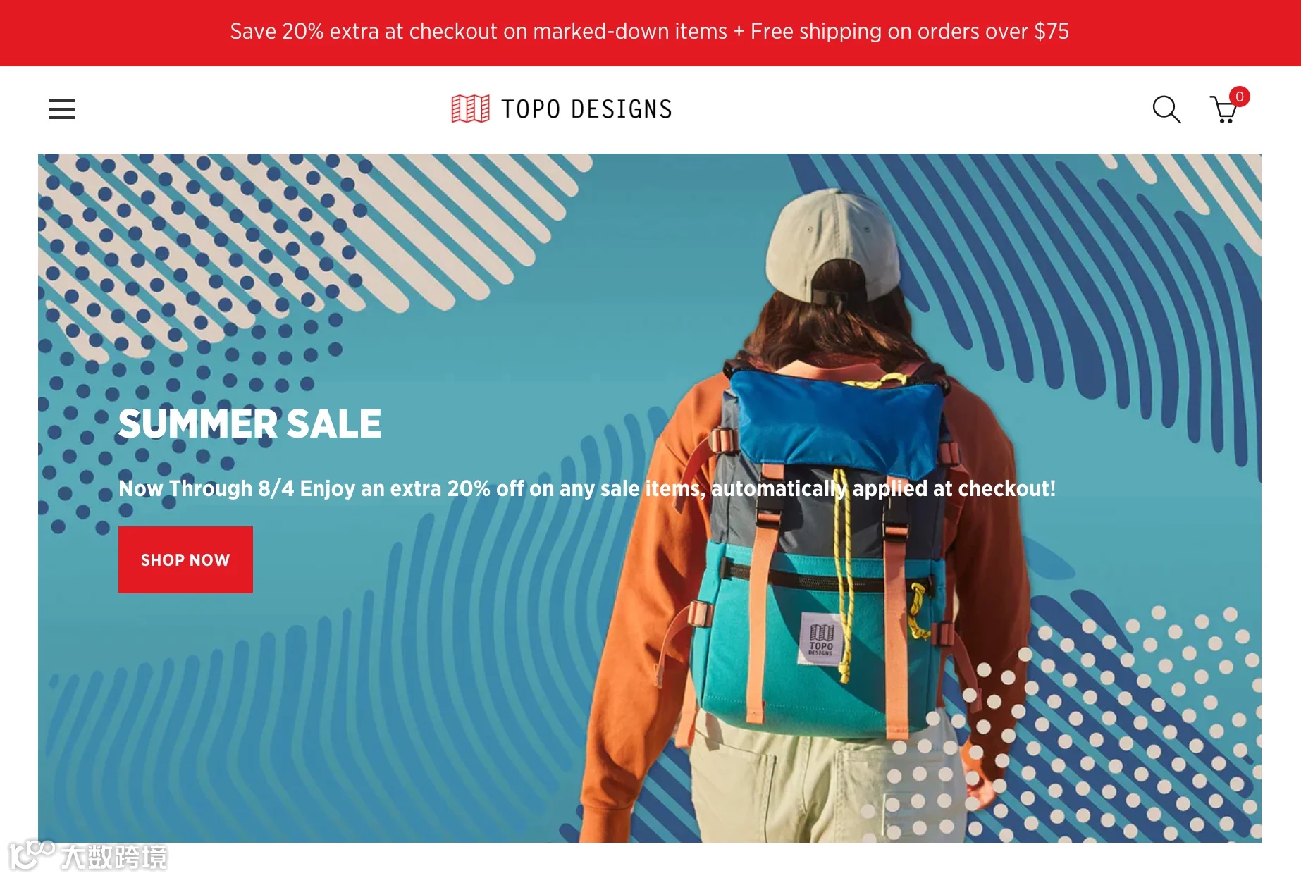 外衣店Topo Designs的目标用户是年轻时尚的户外爱好者,它们使用与目标市场产生共鸣的图像,同时使用独特的背景,从其他外衣品牌中脱颖而出。另一个关键的网站设计最佳实践是品牌如何传达销售,并通过免费送货来激励更多的订单价值。该品牌还提供了一项15%折扣的注册福利,以吸引客户采取行动。