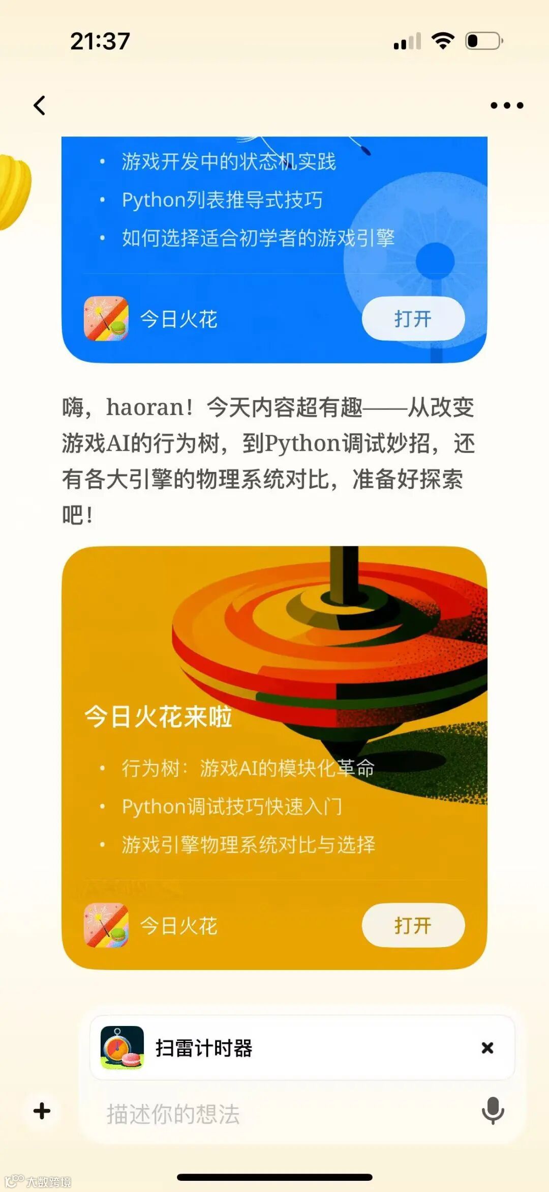 如果说 Mini App 的提速是工程能力的体现,那么 Daily Spark 就是体验革新的体现。