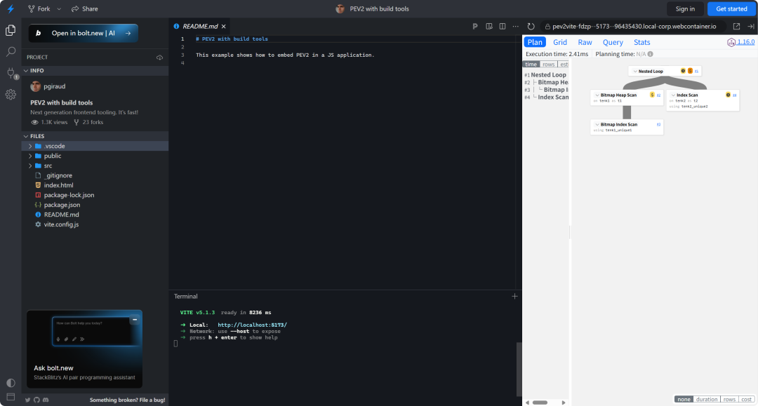 PEV2 项目基于 Vue/TypeScript 开发,遵循 PostgreSQL 开源协议,代码托管在 GitHub: