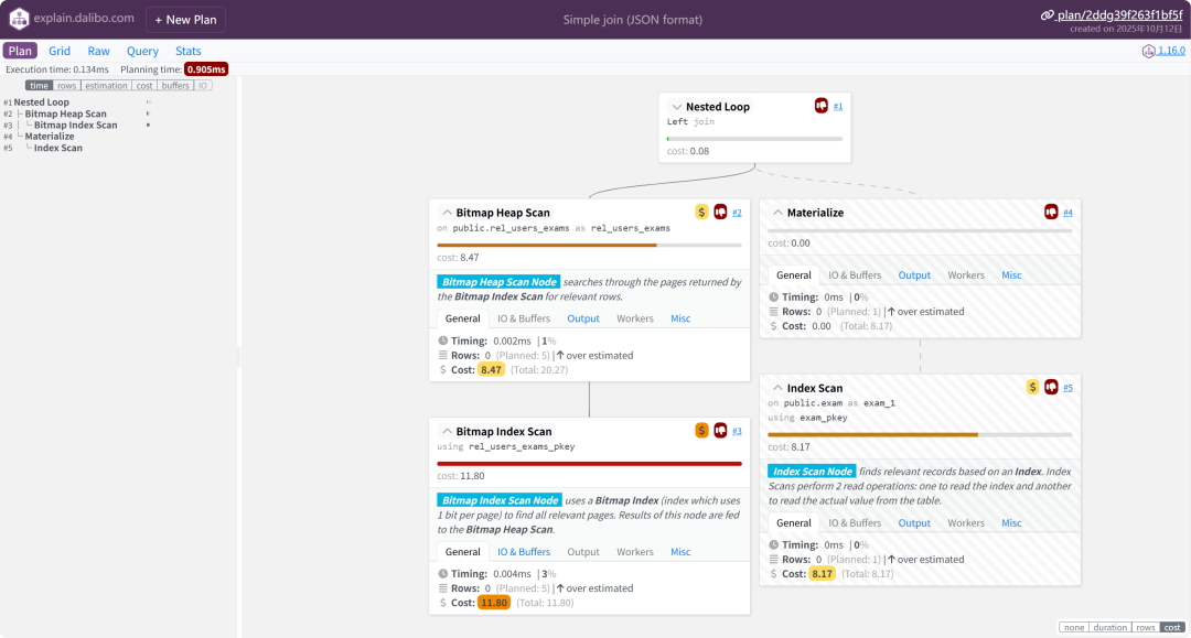 • 精准解析:对执行计划中的节点进行深度解析,提供详细的执行信息,例如节点类型、I/O 与缓冲区、成本、行数等。 -