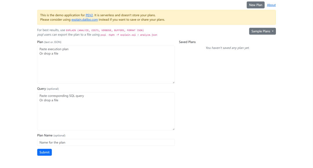 直接上传或粘贴执行计划文本进行可视化分析,这种方式适合快速、临时的分析和在线分享。