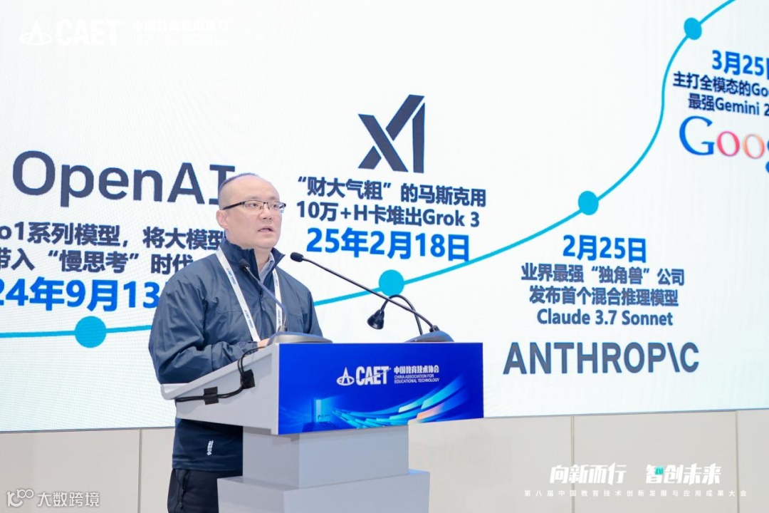 在“技术融合”环节,科大讯飞AI研究院副院长竺博以《以“精准滴灌”的方式重塑教育生态,重构教学模式》为题,系统阐述了通用人工智能技术的最新进展及其在教育领域的典型应用。他指出,大模型技术正推动教育从“标准化灌输”走向“个性化培育”,并通过“多模态融合”等核心技术,构建起能够理解、适应并赋能每一位师生的智能教学系统。当前,讯飞星火大模型已在多个学科教学中实现深度应用,特别是在英语教学中,通过AI英语教师助手、AI听说课堂、E听说作业、英语听说教考平台等多个产品的联动,实现了从“教—学—练—考”全流程的智能化支撑,为教育高质量发展注入了新动能。