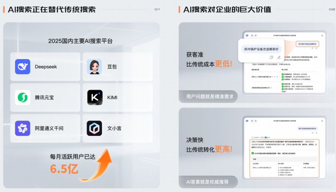 目前人们使用豆包、deepseak这类AI软件越来越频繁,未来呢,AI获客,也就是GEO优化会成为每个企业的必备之路。