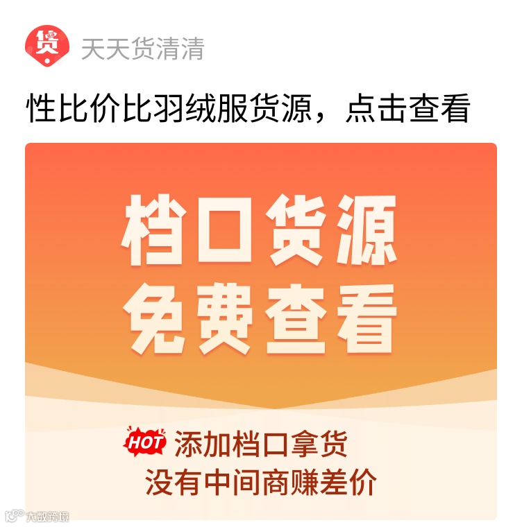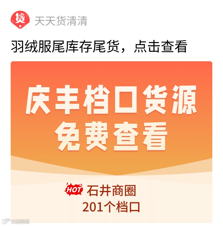 天天货清清是一个库存尾货信息平台,整合了全国羽绒服的库存尾货资源。