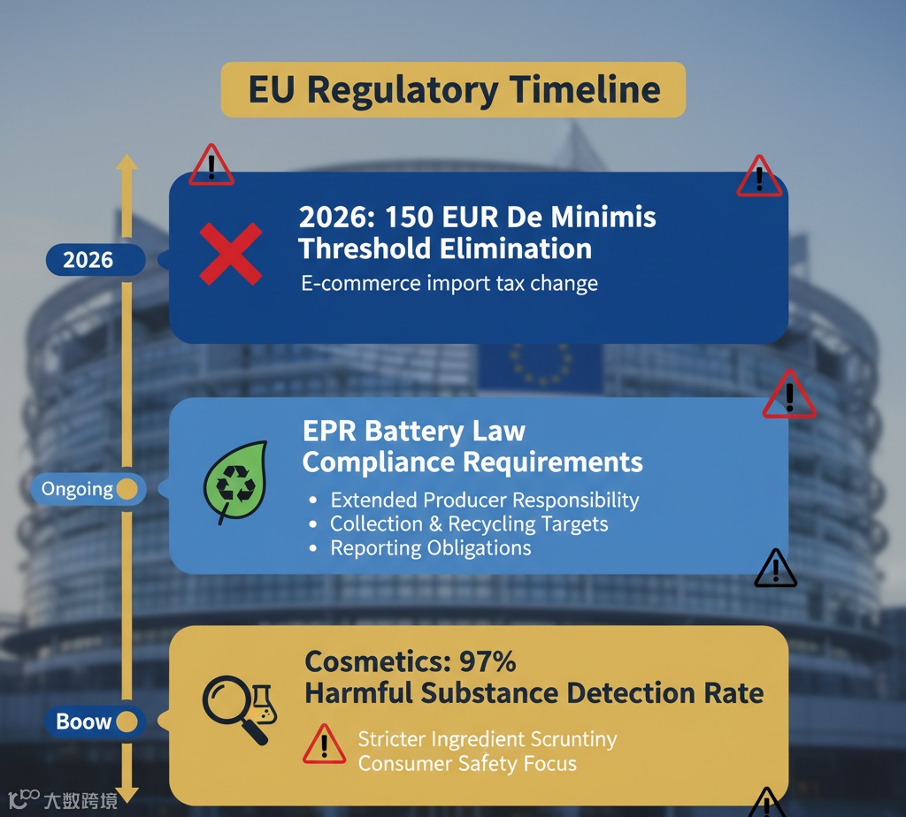 欧盟正酝酿新一轮跨境监管改革,重点整治来自亚洲电商平台的低价与高风险商品。2026年将推出新立法方案,强化产品安全、税收征管与平台责任。近期抽检显示,中国跨境渠道化妆品中97%样本含健康有害物质;全年约有46亿件小额包裹入欧,日均达1200万件。