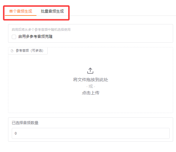 支持2秒声音,进行配音,也可以上传多个参考音频、多个文本,进行批量多音色配音,比如我10个文本,要用10个不同的声音来批量配音,也是可以做到的。