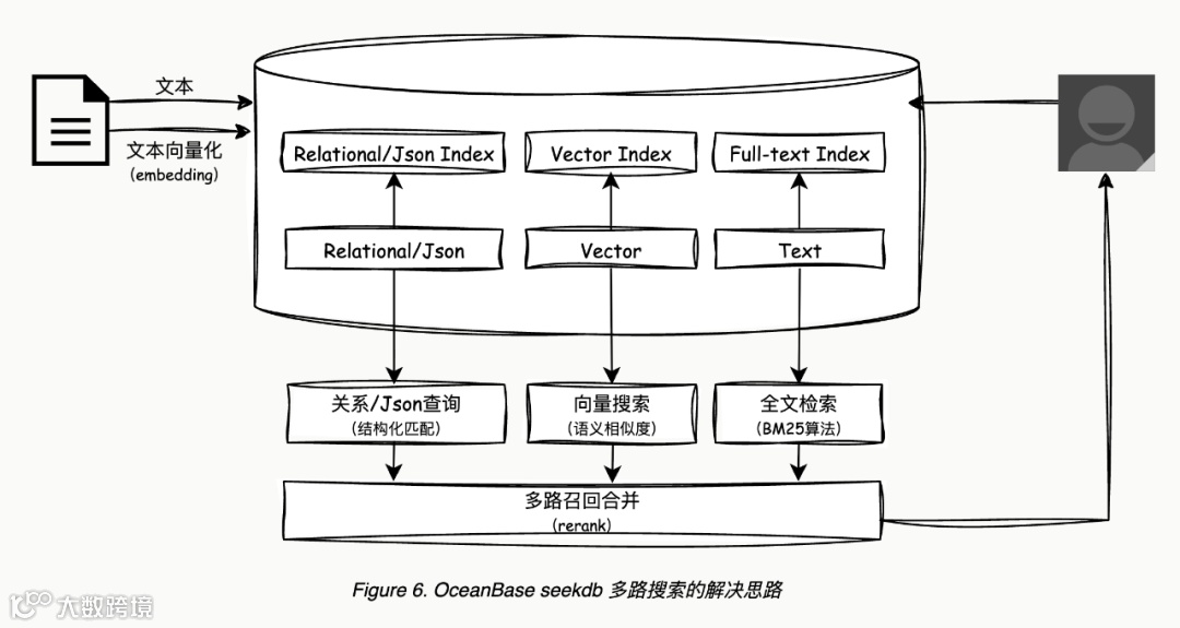 数据库最早为应用服务,处理结构化数据,得到的是确定性的结果。而在 AI 场景下,数据库不仅为应用服务,更为智能服务,需要处理无结构化数据,通过规则和模型得到语义近似的结果,这个过程通常称为搜索。由于这个过程涉及到结构化数据(关系表)、半结构化数据(JSON)以及无结构化数据的各类索引(向量索引、全文索引、图索引),因此可以统称为多模混合搜索,或者 AI 原生混合搜索。