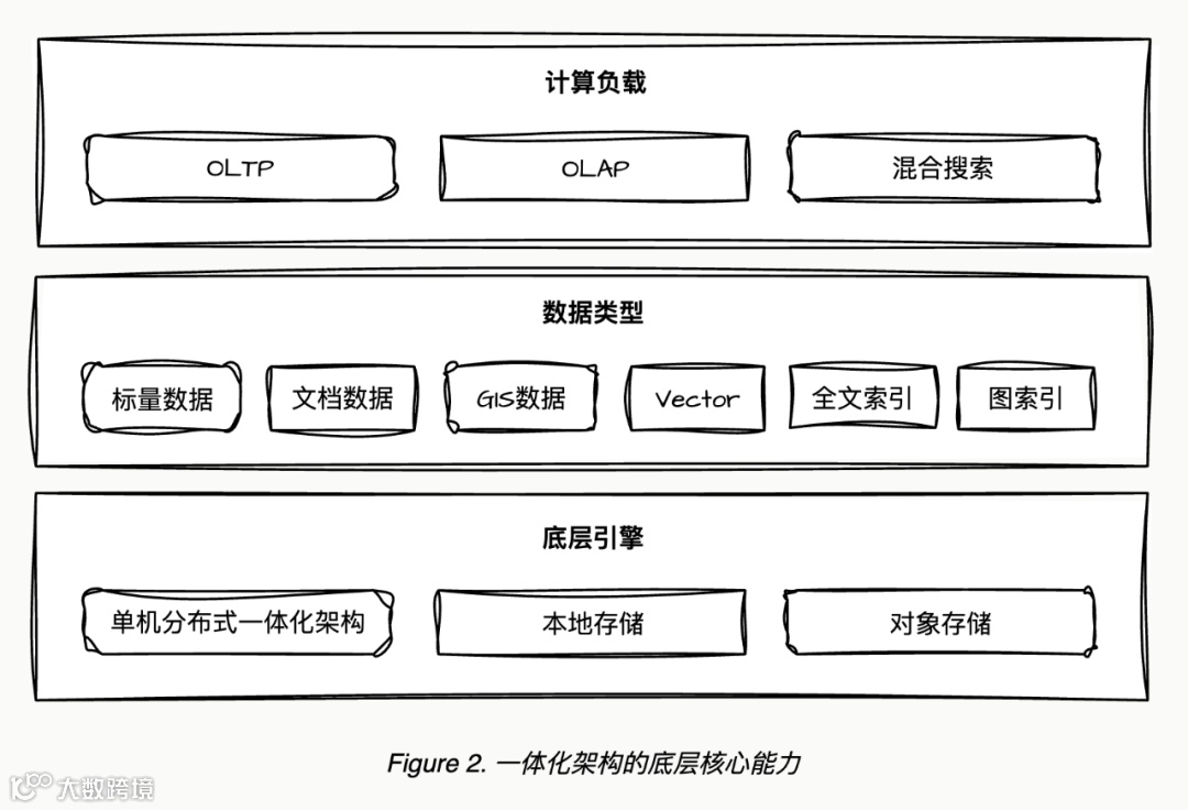 从“为应用服务”到“为智能服务”。既能处理传统的 OLTP、OLAP,也能够支持一种新的工作负载,既多模混合搜索。