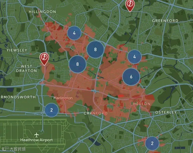 苏格兰和南方电力网络在一份声明中表示,火灾已导致伦敦西部大规模停电,16300多户家庭受到影响。英国国家电网预计电力将在凌晨3点之前恢复。英国国家铁路公司表示,往返希思罗机场的部分火车快线也已停止服务。
