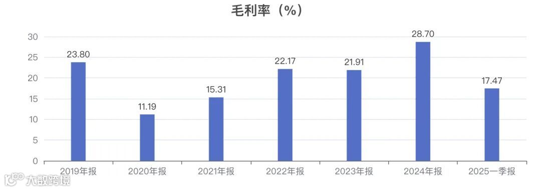 毛利率单季度:2025年一季度毛利率为 17.47%,同比 -25.49%。