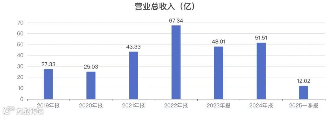 收入单季度:2025年一季度营业总收入为 12.02亿,同比 -15.68%,环比 6.54%。 -