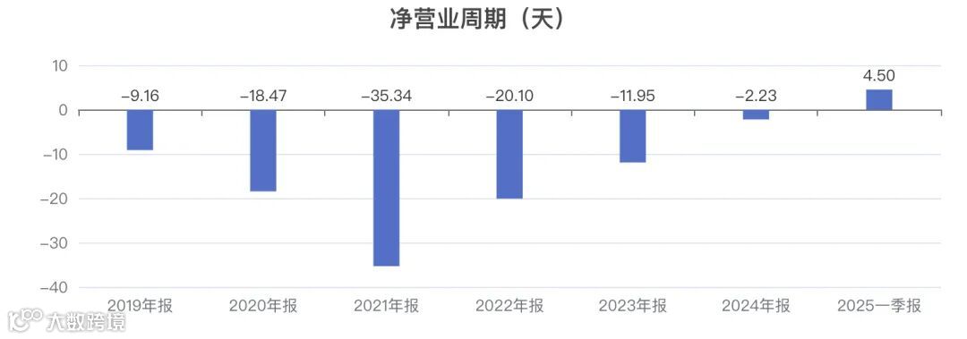 近5年净营业周期从 -9.16天变为 -2.23天。 -