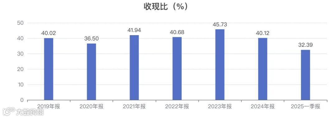 历史5年数据显示,公司的收现比呈波动趋势,历年数据为:36.50%、41.94%、40.68%、45.73%、40.12%。 -