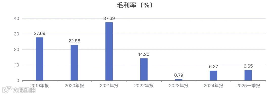 毛利率单季度:2025年一季度毛利率为 6.65%,同比 -16.56%。