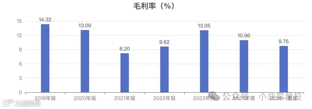 毛利率单季度:2025年一季度毛利率为 9.75%,同比 -26.37%。