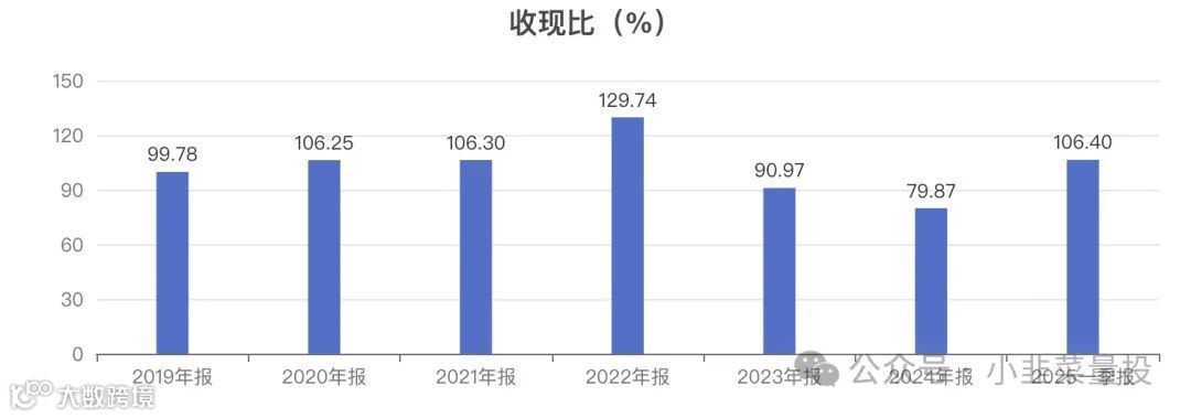 历史5年数据显示,公司的收现比呈波动趋势,历年数据为:106.25%、106.30%、129.74%、90.97%、79.87%。 -