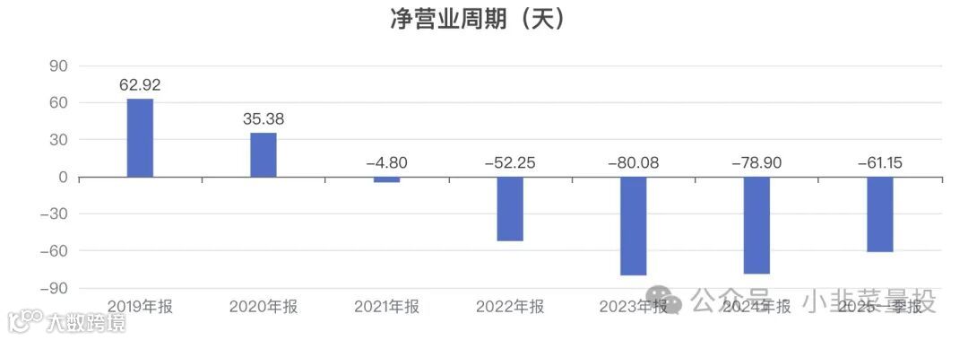 近5年净营业周期从 62.92天变为 -78.90天。 -