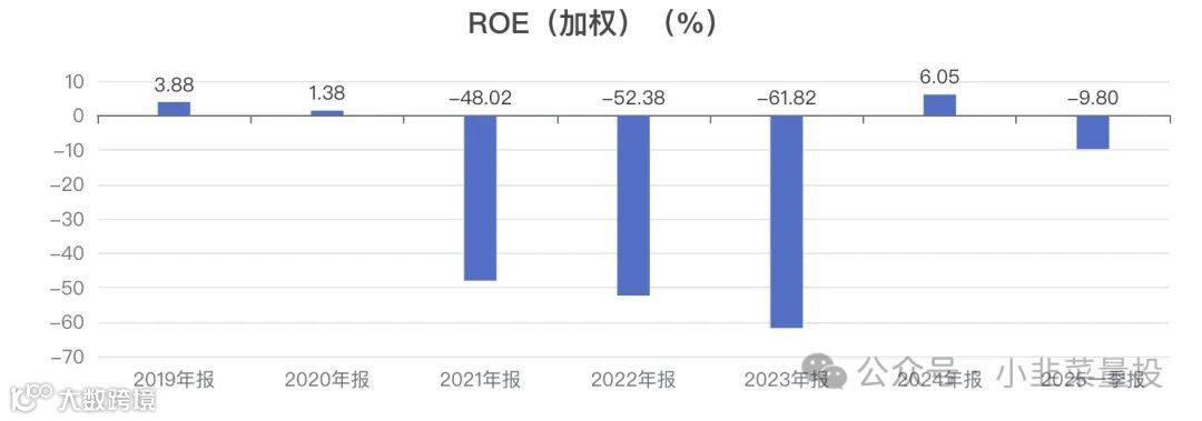 历史5年数据显示,公司的加权ROE呈波动趋势,历年数据为:1.38%、-48.02%、-52.38%、-61.82%、6.05%。