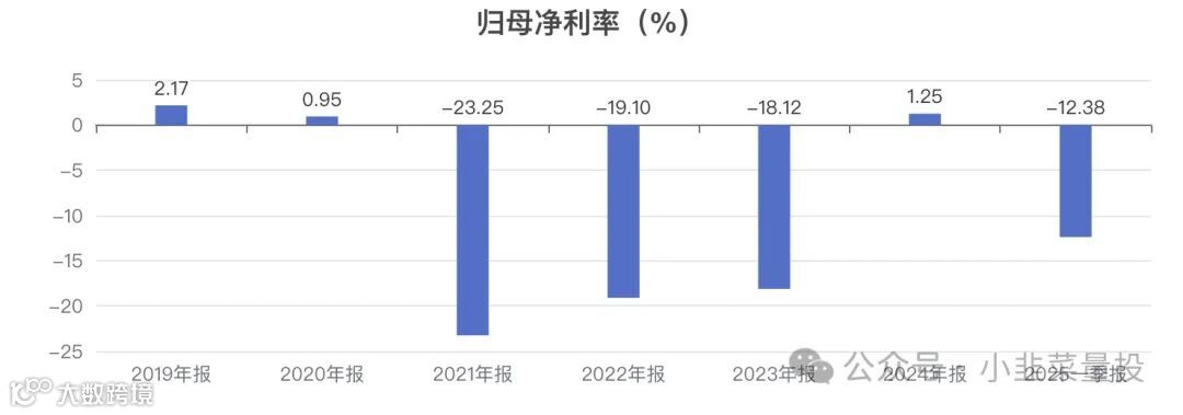 近5年数据显示,公司的归母净利率呈下降趋势,平均数据为 -11.65%。