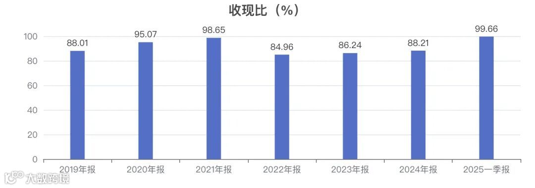 历史5年数据显示,公司的收现比呈波动趋势,历年数据为:95.07%、98.65%、84.96%、86.24%、88.21%。 -