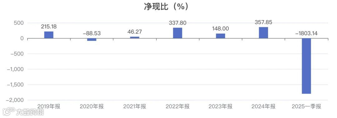 历史5年数据显示,公司的净现比呈波动趋势,历年数据为:-88.53%、46.27%、337.80%、148.00%、357.85%。