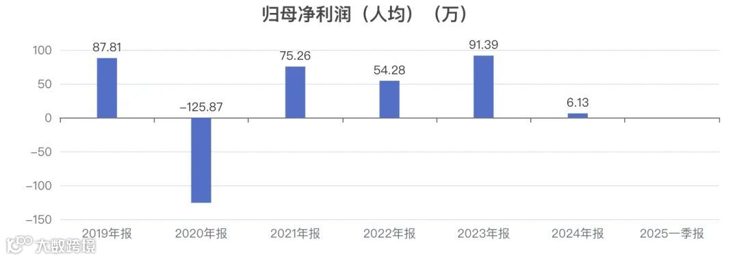 近5年人均归母净利润从 87.81万变为 6.13万。