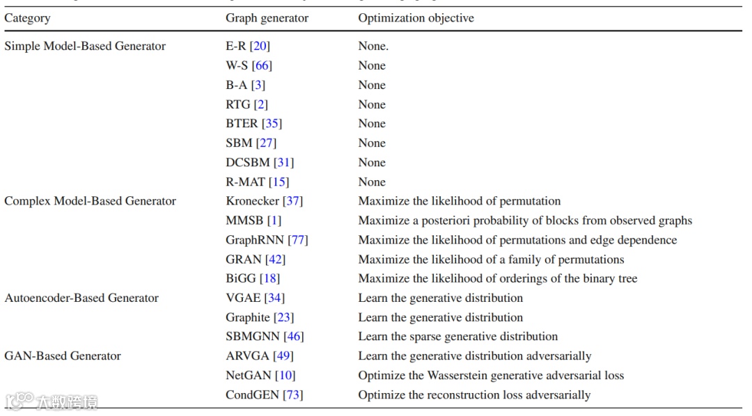 表1:通用图生成器的类别、名称、参考文献及优化目标