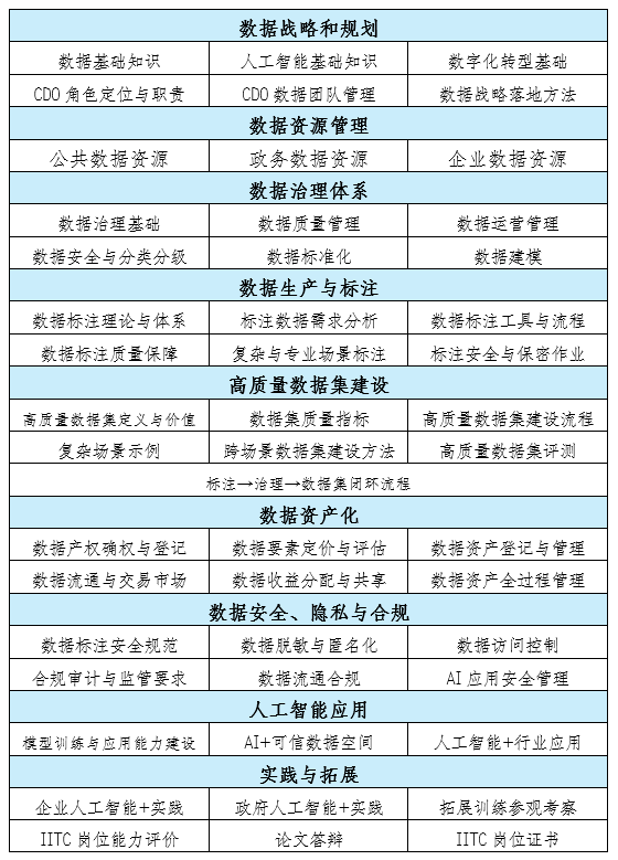 希望获得IITC工信人才岗位能力认证的学员。想通过系统学习掌握数据战略、数据治理、数据标注、高质量数据集建设、数据资产化及AI应用,最终获得岗位能力评价。