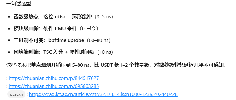 我最后问了kimi一个问题:“哪么,在”高频、超低延迟“下,有源码的情况下,有什么更好的可观测性的技术吗?”